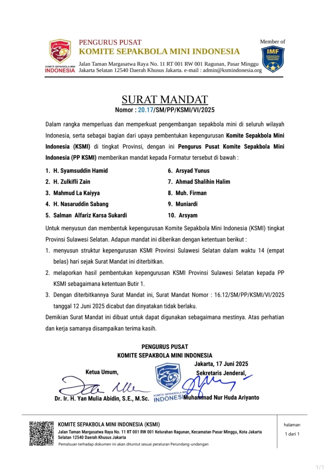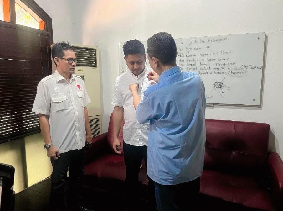 FAJARTIMURNEWS.com Jakarta – Senin 23 Juni 2025 Pemasangan pin kehormatan Komite Sepakbola Mini Indonesia (KSMI) dilakukan secara simbolis kepada Arsyam, salah satu tokoh muda asal Sulawesi Selatan, yang dipercaya menjadi bagian dari tim formatur KSMI Provinsi Sulsel.