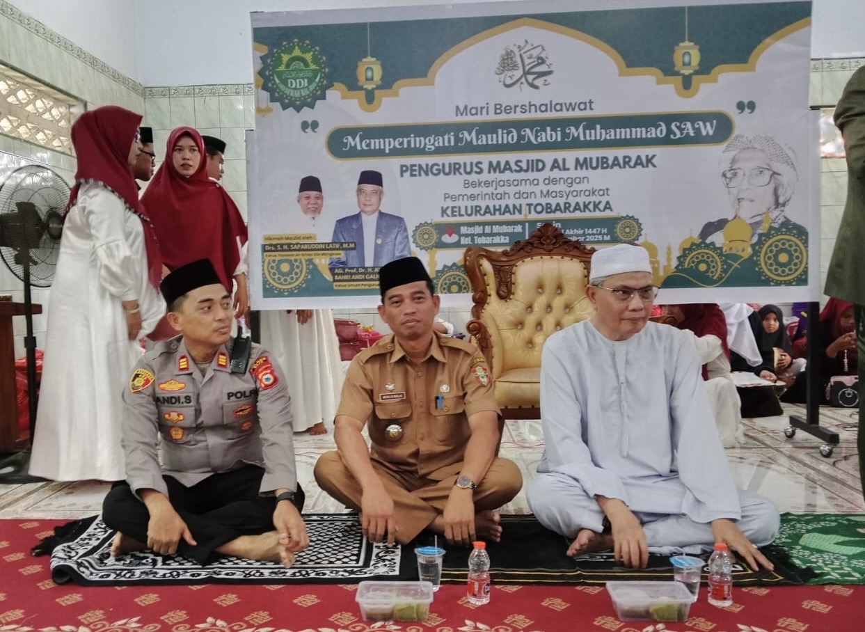 Peringatan Maulid kali ini atas kerjasama pengurus Masjid Al Mubarak, Pemerintah dan Masyarakat Kelurahan Tobarakka.