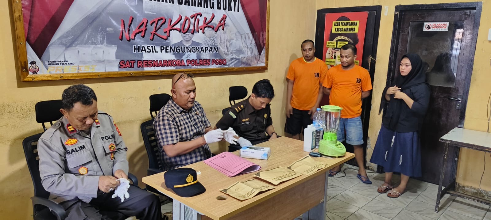 Kegiatan pemusnahan dipimpin oleh personel Sat Resnarkoba Polres Poso yang dikomandoi KBO Sat Resnarkoba Ipda Risman, S.H., bersama tim, dan disaksikan langsung oleh ketiga tersangka. Hadir pula sejumlah saksi dari unsur Kejaksaan Negeri Poso, BNNK Poso, serta perwakilan fungsi pengawasan internal Polres Poso.