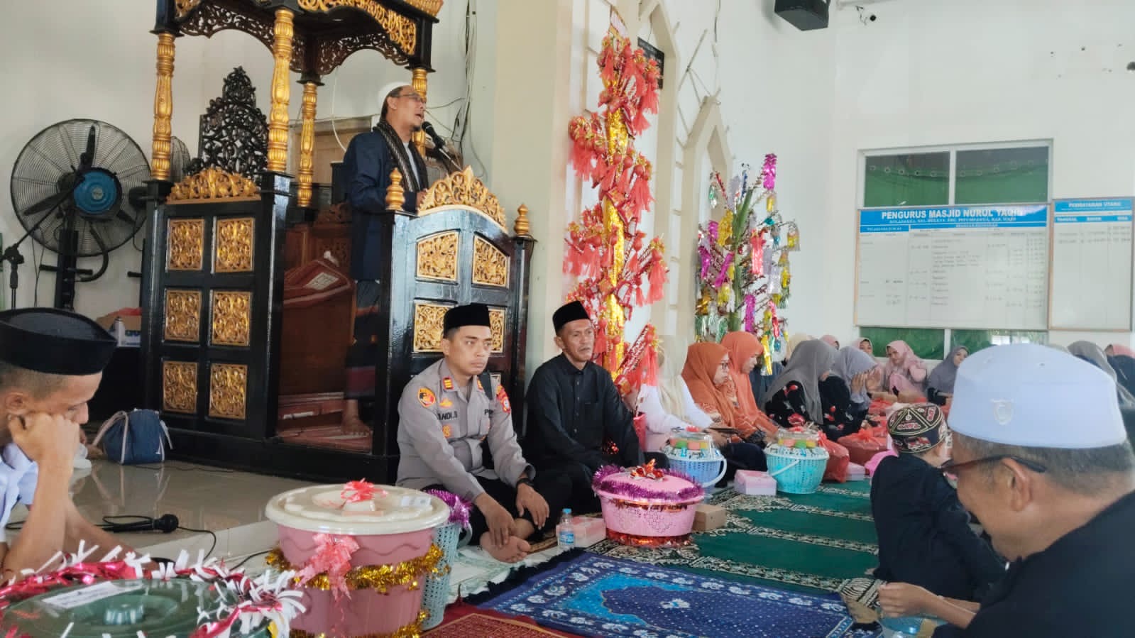 Suasana Maulid semakin semarak dengan lantunan shalawat dan sira Nabi, sementara pesan moral sang Kapolsek kian meneguhkan arti silaturahmi.