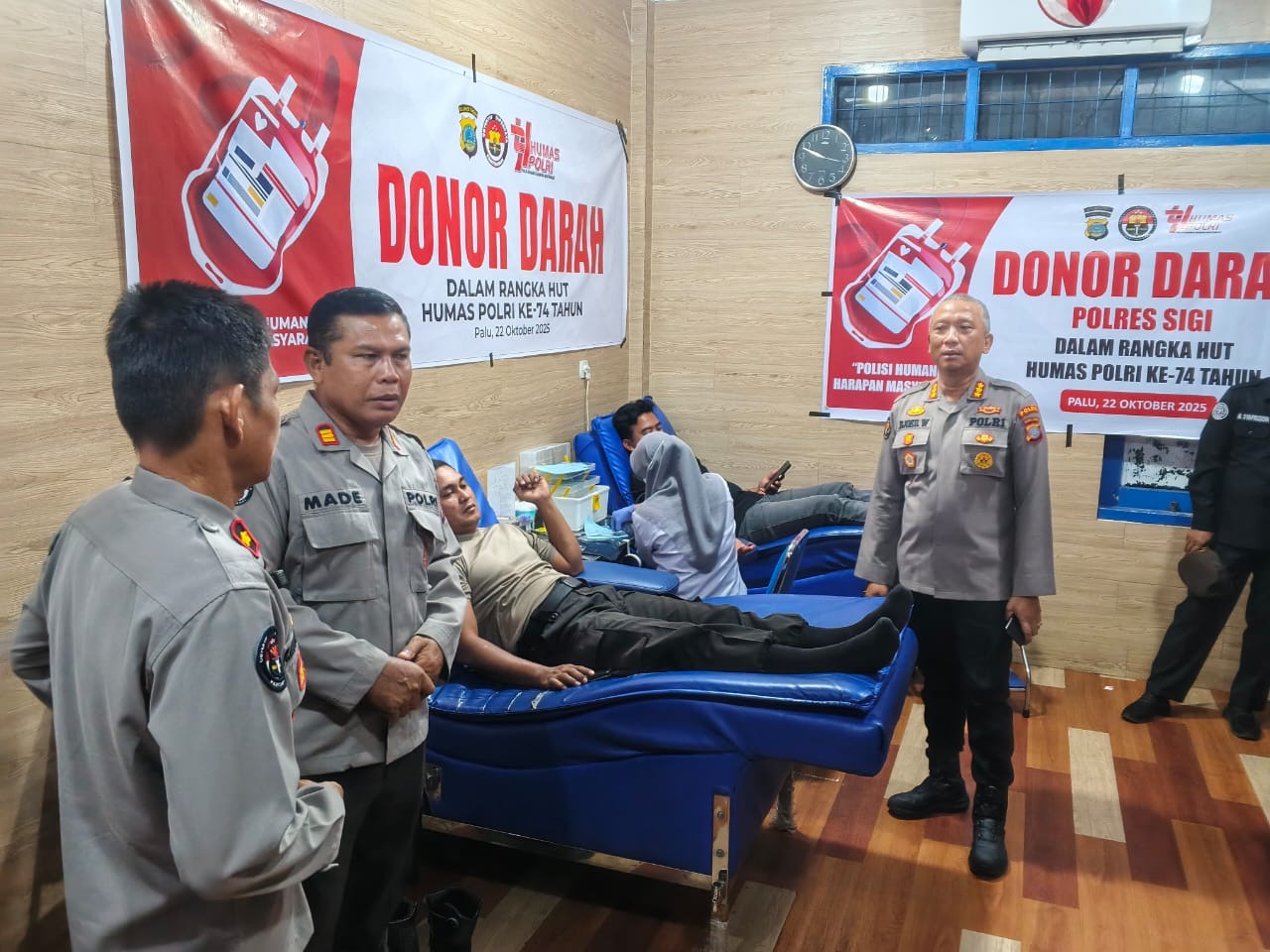 FAJARTIMURNEWS.com Palu Sulteng. Dengan mengusung tema "Polri Humanis Harapan Masyarakat", jajaran Polda Sulteng menggelar aksi sosial dan kemanusiaan berupa donor darah, guna memperingati Hari Ulang Tahun ke 47 Humas Polri, di kantor Palang Merah Indonesia (PMI) Sulawesi Tengah, Selasa (22/10/25).