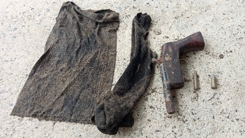 Menurut Rianto, penemuan senjata api rakitan laras pendek serta sebutir peluru revolver dan sebutir peluru SS1, berawal ketika warga mengambil material tanah di sungai kecil dan pinggiran gunung guna menimbun ruas jalan yang rusak. Saat tanah tersebut akan digunakan, warga melihat bungkusan kain hitam yang sudah berlumut tertimbun tanah.