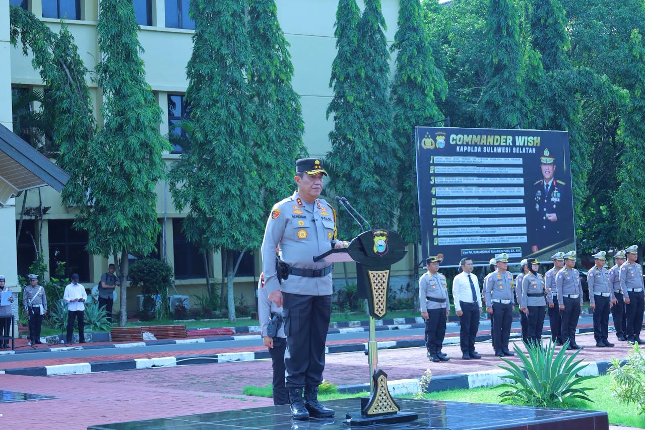Apel ini dipimpin langsung oleh Kapolda Sulsel Irjen Pol Djuhandani Raharjo Puro S.H., M.H., diikuti oleh Para Pejabat Utama Polda Sulsel, pimpinan TNI, instansi terkait, serta seluruh personel yang terlibat dalam operasi.