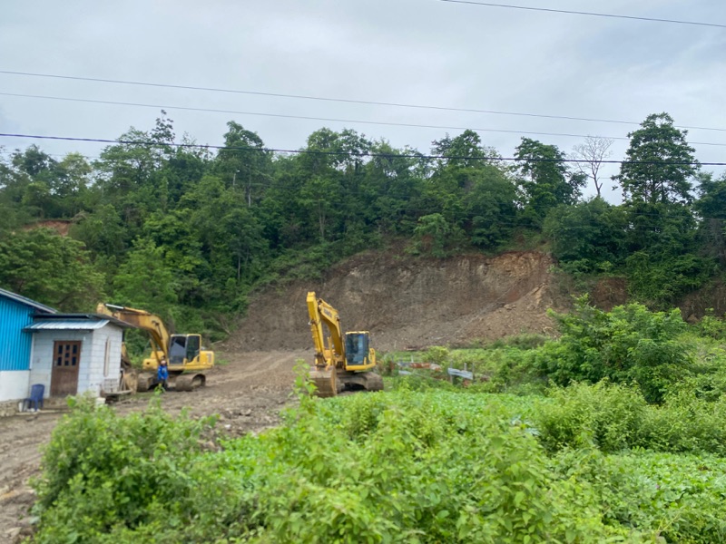 Kegiatan pengerukan tebing menggunakan alat berat dan lalu-lalang truk pengangkut material membuat masyarakat sekitar geram.