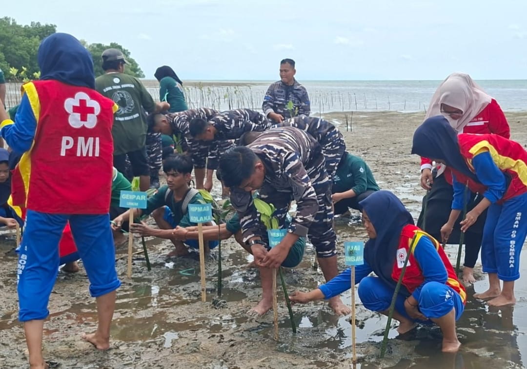 Kegiatan tersebut kemudian dilanjutkan dengan penanaman mangrove secara simbolis oleh perwakilan TNI AL, pemerintah daerah, dan unsur masyarakat, sebagai tanda dimulainya aksi penanaman secara serentak di area yang telah ditentukan.