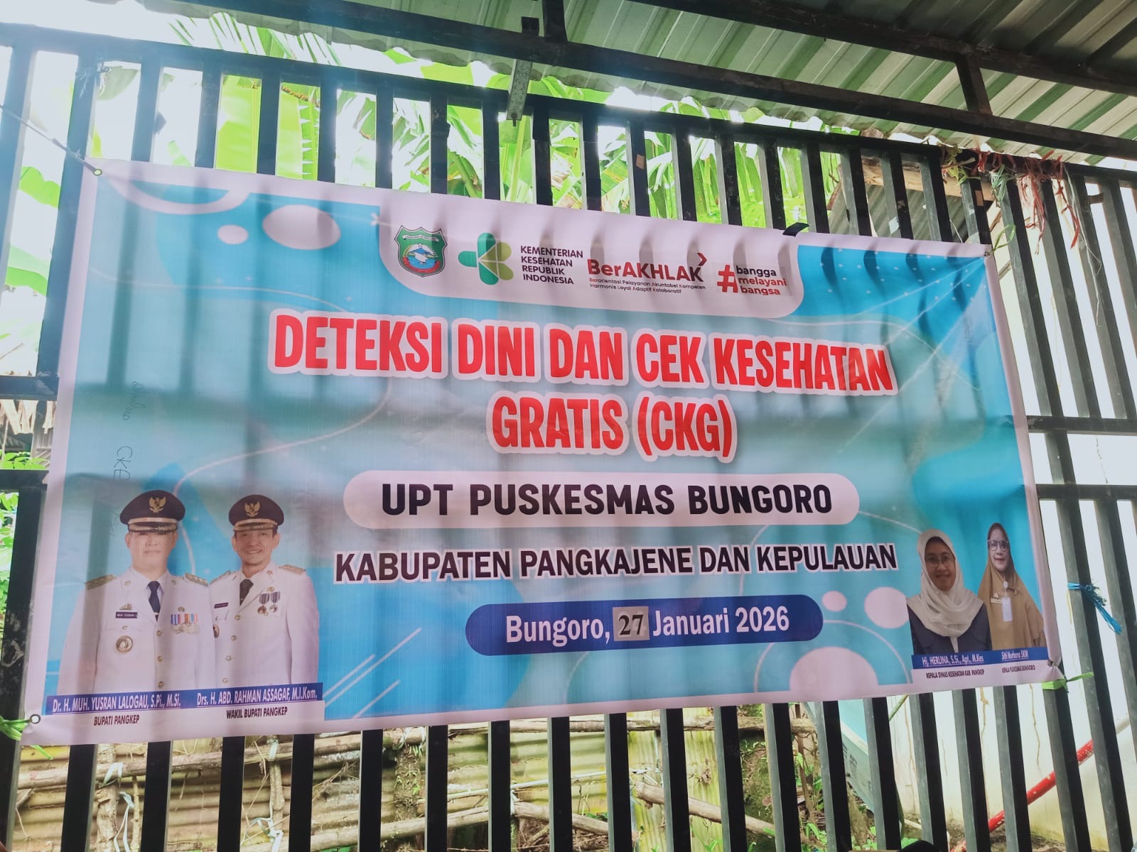 FAJARTIMURNEWS.com PANGKEP — UPT Puskesmas Bungoro, Kabupaten Pangkajene dan Kepulauan (Pangkep), melaksanakan kegiatan Deteksi Dini dan Cek Kesehatan Gratis (CKG) bagi masyarakat di Desa Mangilu, Kecamatan Bungoro, pada Selasa, 28 Januari 2026. Kegiatan ini merupakan bagian dari upaya peningkatan pelayanan kesehatan promotif dan preventif kepada masyarakat secara langsung.