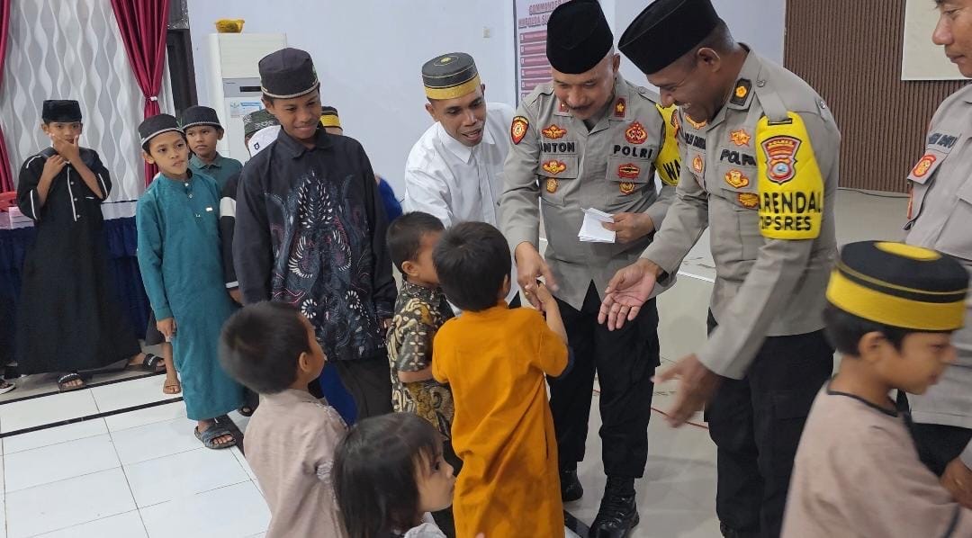 Kepada para anak yatim, Polres Morut memberi perhatian khusus ditandai pemberian santunan.