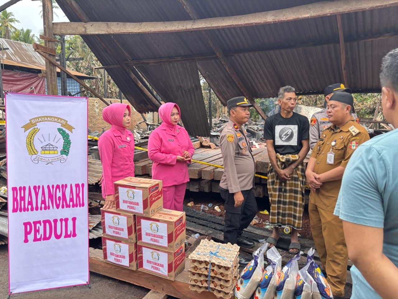 Adapun bantuan yang disalurkan berupa kebutuhan pokok, antara lain beras, telur, dan mi instan untuk membantu meringankan beban para korban pascakebakaran.