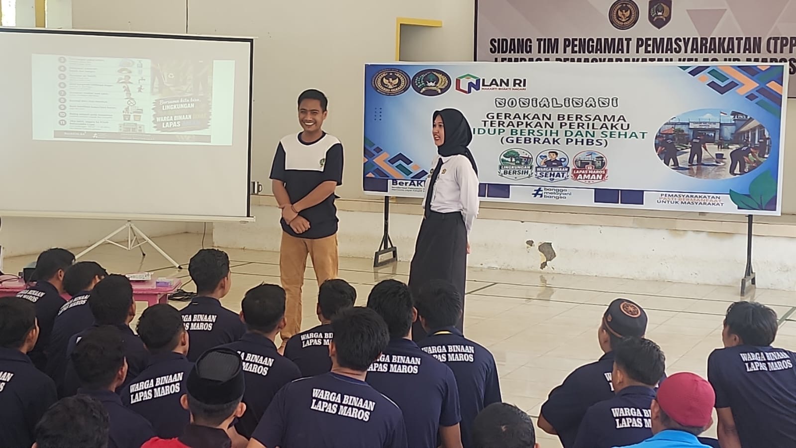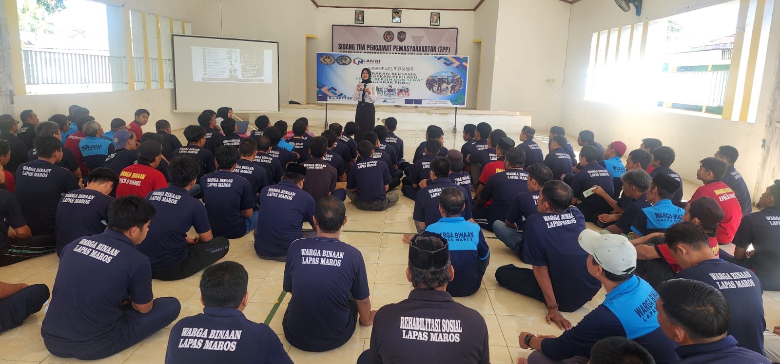 FAJARTIMURNEWS.COM - Lembaga Pemasyarakatan Kelas II B Maros melaksanakan kegiatan rutin GERAKAN BERSAMA TERAPKAN PERILAKU HIDUP BERSIH DAN SEHAT (GEBRAK). Untuk warga binaan pemasyarakatan (WBP) di aula lapas.